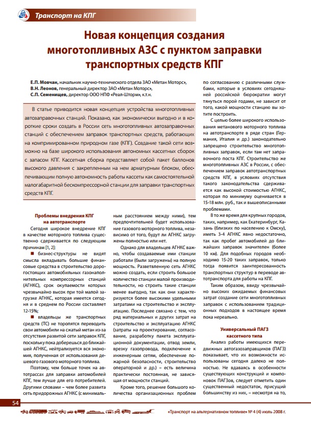 В статье рассматривается, как экономически выгодно и в короткие сроки создать в России сеть многотопливных АЗС с обеспечением заправок транспортных средств, работающих на КПГ