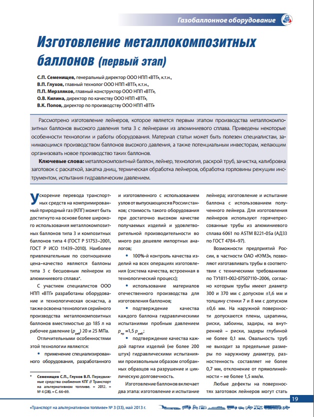 Рассмотрено изготовление лейнеров, которое является первым этапом производства металлокомпозитных баллонов высокого давления тип 3 с лейнерами из алюминиевого сплава