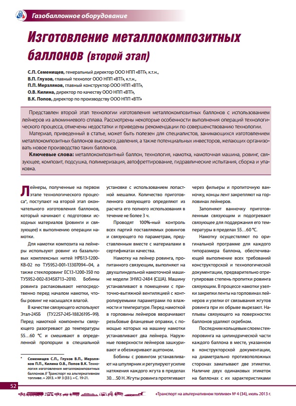 Главная  |  Статьи  |  Изготовление металлокомпозитных баллонов (второй этап)