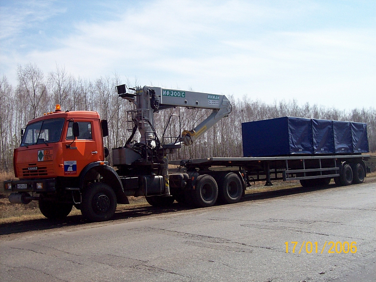 2. ПАГЗ 1680-К-25-КМУ с пятью автономными модулями по 560 нм3 на полуприцепе без дожимающего компрессора с крано-манипуляторной установкой для разгрузки и загрузки модулей, эксплуатируется ООО «Газпром трансгаз Саратов», г. Саратов с 2010 года (рис.2). Всего в системе обеспечения потребителей КПГ задействовано 9 модулей. Этот тип ПАГЗа запатентован (7)