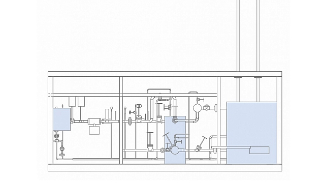 Модуль разгрузки криогенных емкостейМодуль состоит из погружного криогенного насоса низкого давления, регазификатора, системы выдачи и коммерческого учета СПГ и АСУТП, смонтированных в стальном контейнере, который может быть установлен на шасси полуприцепа. |