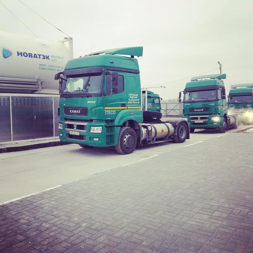 КАМАЗы на СПГ заправке Новатэк. Для заправки используется Модульная газозаправочная установка производства компании ГазСервисКомпозит.​
